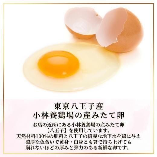 地元八王子の養鶏場で採れた新鮮な産みたて卵を使用。濃厚な味わいの卵黄はプリンの風味とくちどけの良い食感に仕上げるとても大切な役割をしています。