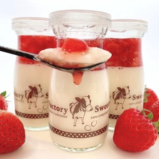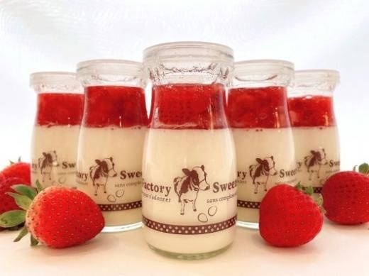 フレッシュな完熟イチゴの果肉の食感を残したイチゴソースと上質な生クリームとミルクをそのままプリンにしました。
